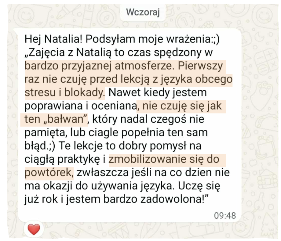 Ty nie musisz tyle czekać, bo nie trzeba być na poziomie zaawansowanym, żeby zacząć mówić - na moich zajęciach rozmawiasz już od pierwszej lekcji!